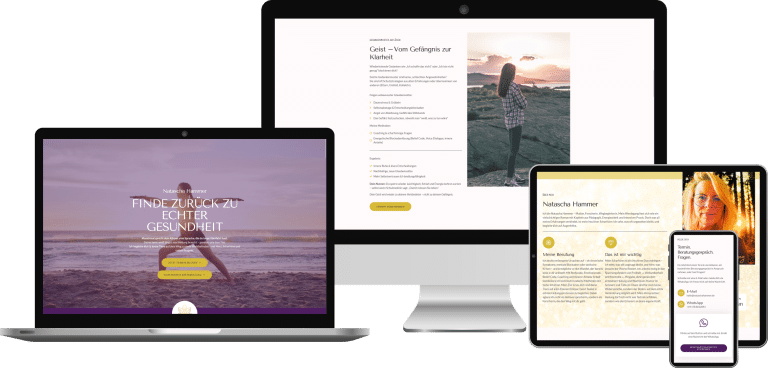 - Gezieltes Storytelling für die Seelenreise: Die Webseite wurde gezielt um Nataschas Kernbotschaft herum aufgebaut. Ihre Texte, die den Schmerz des „Ignorierens“ und die Klarheit des „Verbunden-Seins“ beschreiben, wurden zentral in das Design integriert, um eine narrative Reise für den Besucher zu schaffen.